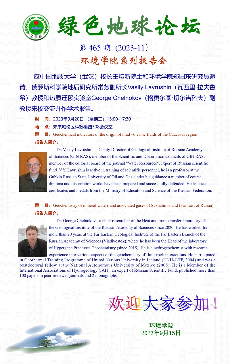 俄罗斯科公司地质研究所Vasily Lavrushin教授和热质迁移实验室George Chelnokov副教授学术报告