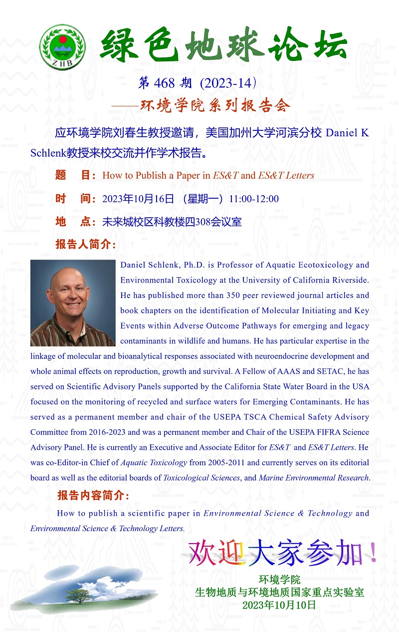 美国加州大学河滨分校Daniel K Schlenk教授学术报告