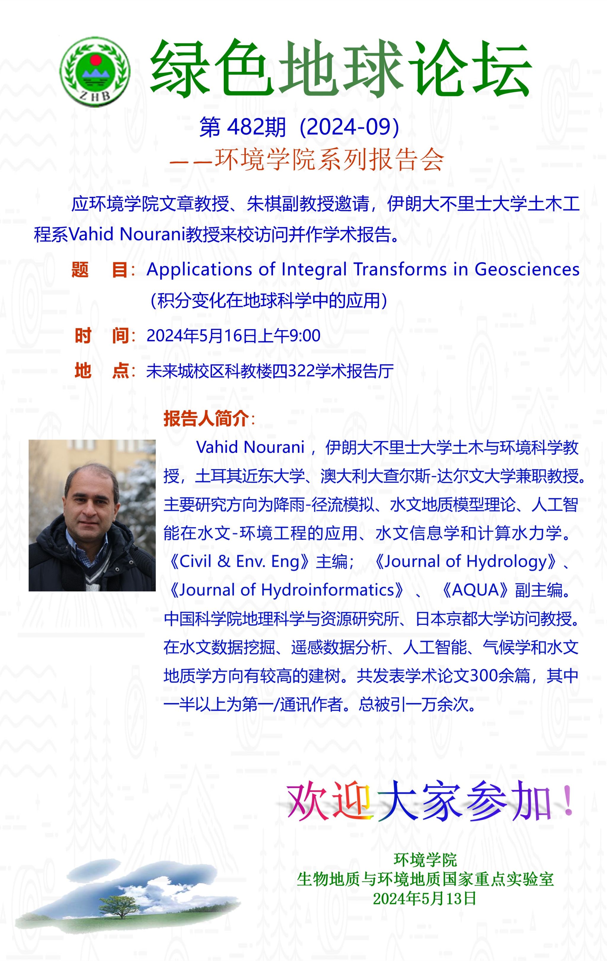 伊朗大不里士大学土木工程系Vahid Nourani教授学术报告