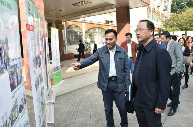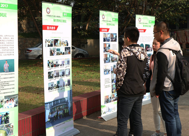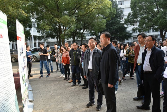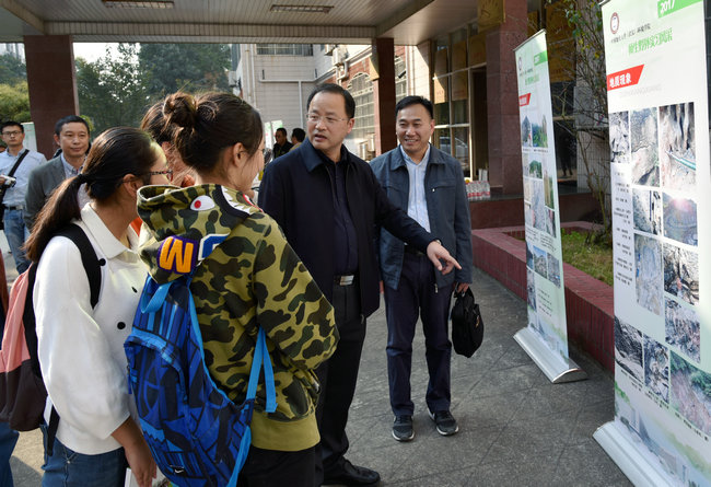 (张学海 /文/图)10月27日下午在文华楼前,2017年师生野外实习风采展开幕。公司党委书记何光彩参观师生野外实习风采展。