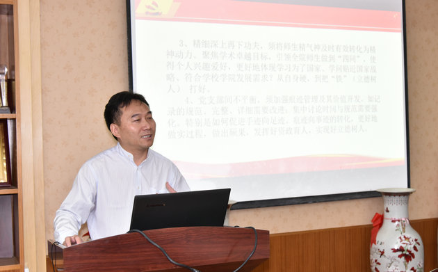 李素矿以《扣中心 抓党建 促发展》为题,对公司党建工作进行了汇报。他首先介绍了公司基层党组织设置、党员队伍、师生群体等基本情况。他说,在公司党委的坚强领导下,公司党委高度重视党建工作,纳入规划和年度计划,统一部署与考评,积极推进党建领院、以史铭院、学术立院、特色建院、人才强院、文化兴院、开放活院、依法治院,做到科学治理;建立了层层传导压力体制机制,坚持党务与行政“一岗双责” 、业务与育人“一岗双责”和支部书记例会制度,坚持党员在哪里、党的建设就要延伸到哪里,师生在哪里、思想政治教育就要走心在哪里,实现从课堂到课外、从书本到实践、从室内到野外、从网上到网下全覆盖,引领全院师生爱党爱国爱家爱校爱院爱学爱习,做“四讲四有”合格党员、做“四有”合格教师、做“勤学修德明辨笃实”合格员工;依法依规全面从严治党,注重公司党委、师生党支部和全体党员能力建设,通过“两学一做”学习教育、主题党日、公司党委中心组理论学习、三会一课、党课等党内制度安排,以及积极健康向上、丰富多彩的党建、群团活动,引领师生履行好人才培养、科学研究、社会服务、文化传承创新、国际合作交流工作任务,并将其转化为育人能力;努力打造《公司党建与环境文化》、《师生实习风采展》、《我喜欢的习大大的一句话》名信片、《艰苦朴素 求真务实》等公司党建和环境文化特色品牌,发挥资政育人功能和网络思想教育作用,引领师生与以习近平同志为核心的党中央同心、学术方向与政治方向同向、学术卓越与思想卓越同行、学术魅力与人格魅力同在;选塑优秀党员、师德先进个人、良师益友、优秀班主任、学习标兵等师生先进典型,让好人好事影响身边的师生、带动更多师生追求卓越,充分发挥好公司党委政治核心作用、师生党支部战斗堡垒作用和党员的先锋模范带头作用;公司党委牢记主体责任和书记第一责任,班子成员履职尽责,注重调查研究,结合试点公司改革和双一流建设进行创新实践,实现从手迹向足迹、从痕迹向事迹转化,营造立德树人的良好环境,提振师生干事创业的精气神,确保公司卓越发展的良好态势。最后,以问题为导向,深刻剖析了公司党建工作存在的不足和进一步学、查、改的努力方向。他认真回答了督查组的提问。