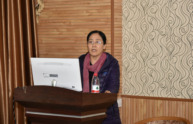 王红梅副经理介绍了公司“校庆65周年学术交流月”活动基本情况,并做了《鄂西洞穴系统地质微生物的时空分布及其古环境意义》的学术报告。