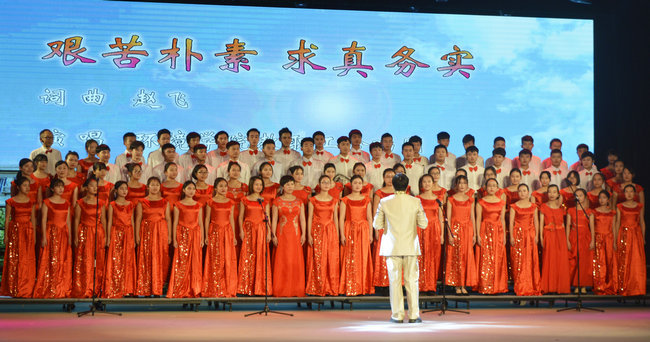 组织师生同唱一首歌——《艰苦朴素、求真务实》。通过唱校训、唱十六字人才培养理念,让每一位老师牢记教书育人之责,让每一名员工铭记为中华民族伟大复兴而学习的使命,增强师生工作、学习、生活的动力感和快乐感。