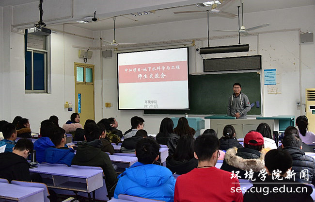 (通讯员 卢笙 摄影 孟国强 编辑 张学海)2019年1月11日下午,首届“地下水科学与工程”中加合作办学项目师生总结交流会在教三楼302举行。公司党委书记李素矿,副经理郭会荣、党委副书记姜明敏,班主任刘鹏、学工组辅导员李平、孟国强、中加项目秘书严冰、中加项目专职辅导员卢笙、中加项目教务秘书付苑婷、国际合作处项目专员刘婧宙及首届“地下水科学与工程”专业中加合作办学班37名同学参加师生总结交流会。