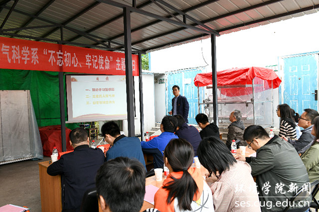 参会领导交流指导。公司党委组织部副部长冷再心指出,此次主题党日活动在一线实验室开展,很好地体现了主题教育活动的一线规则;大气科学系党支部的师生团队守初心、担使命,奋斗在一线、奉献为军运,是“不忘初心、牢记使命”主题教育的生动实例,体现了地大师生的责任与担当。公司主题教育第二指导组副组长朱丹谈到,为大气科学系党支部教工党员在三全育人、服务军运等方面主动作为、无私奉献的精神感动;大气科学系教工党员传承了地大老一辈科学家身上的精气神,希望大气系成为具有深厚底蕴的特色专业。大气科学系主任李双林教授说,大气科学系虽然是新成立的年轻的系,但教风学风非常好,青年教工党员讲奉献、讲团结,教学科研齐努力,立德树人展作为,一定会不负众望。
