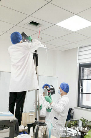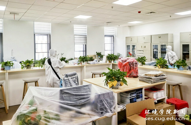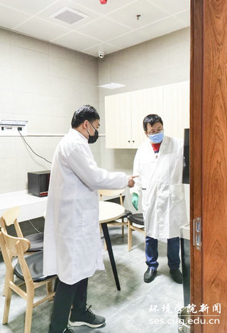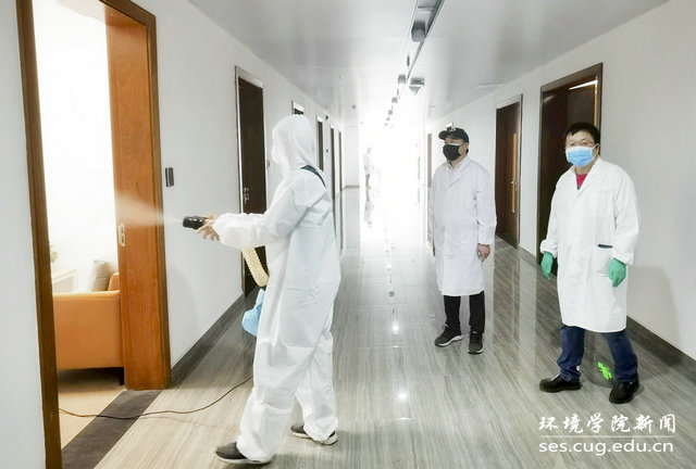 4月29日,公司党委书记李素矿,副书记姜明敏,院办主任左麦枝、实验中心主任潘欢迎等在科教楼四检查指导消杀工作。明确任务,提出要求,保质保量地做好消毒,为师生创造良好的学习和工作环境,让师生放心安心。