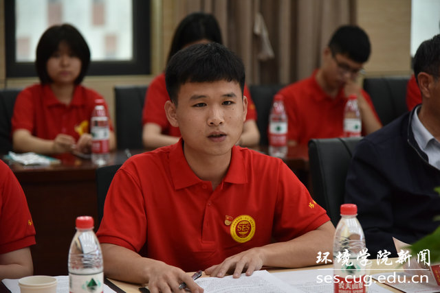 “张国旗班”党支部书记熊水生从党员的身份谈起,认为张国旗学长用实际行动践行了共产党员“随时为党和人民牺牲一切”的誓言,表示会在张国旗精神感召下,励志争做新时代的生态环保铁军。