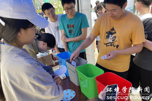 现场活动展区进行的如火如荼,在寓教于乐中,同学们参与到垃圾分类、环保知识问答、气象知识问答等科普互动活动,通过现场工作人员的悉心讲解,了解到垃圾分类、大气科学小知识,“你画我猜”、“套圈竞赛”等小游戏让同学们参与热情高涨。