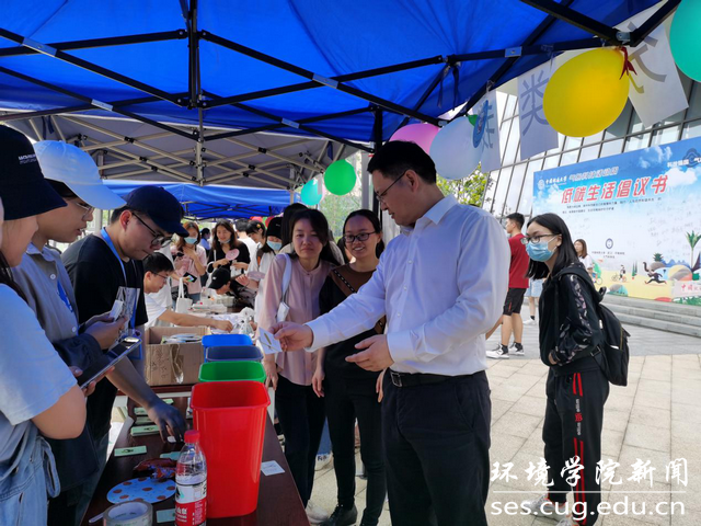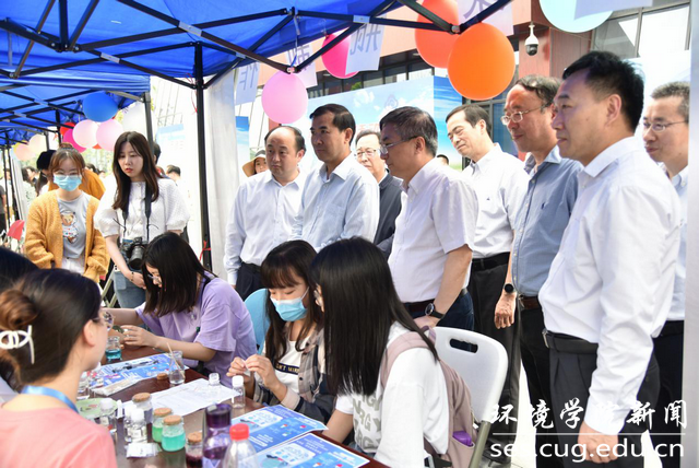 5月21日下午,中国气象局副局长宇如聪一行到未来城校区参观调研。在老员工活动中心前与环境科技文化节--大气科普活动现场员工互动。