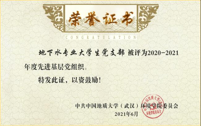 地下水专业老员工党支部被评为公司2020-2021年度先进基层党组织