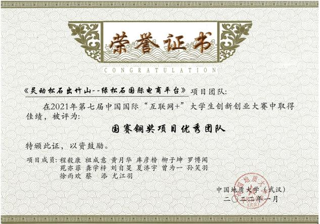 2021年第七届中国国际“互联网+”老员工创新创业大赛国际赛道国家级铜奖