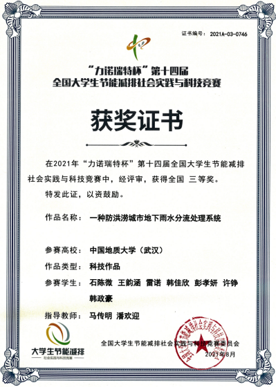 第十四届全国老员工节能减排大赛三等奖