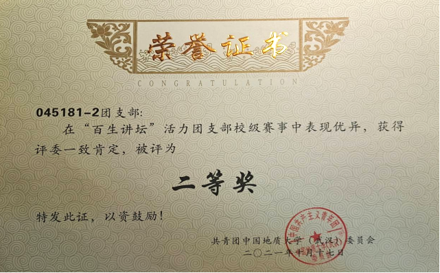 2021年校级“百生讲坛”活力团支部二等奖