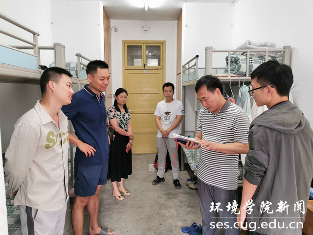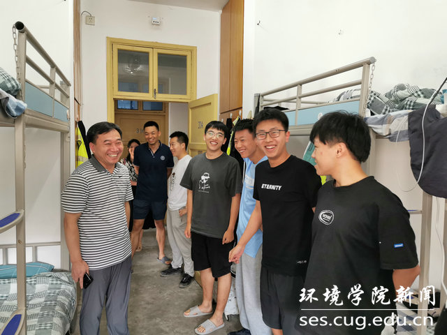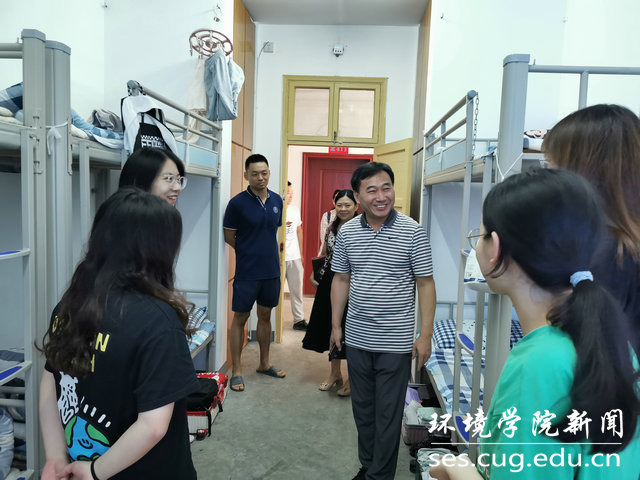 座谈会前,李素矿一行走进宿舍看望实习员工,与员工亲切交谈,问询员工野外实习期间的学习生活收获,查阅同学们的野外实习记录薄。他鼓励同学们一定要珍惜野外实习机会,在野外实习实践中提升理论认知水平、专业操作技能,涵养热爱自然、尊重自然、敬畏自然的情怀,并叮嘱员工一定要注意安全,做好防暑降温、疫情防护。