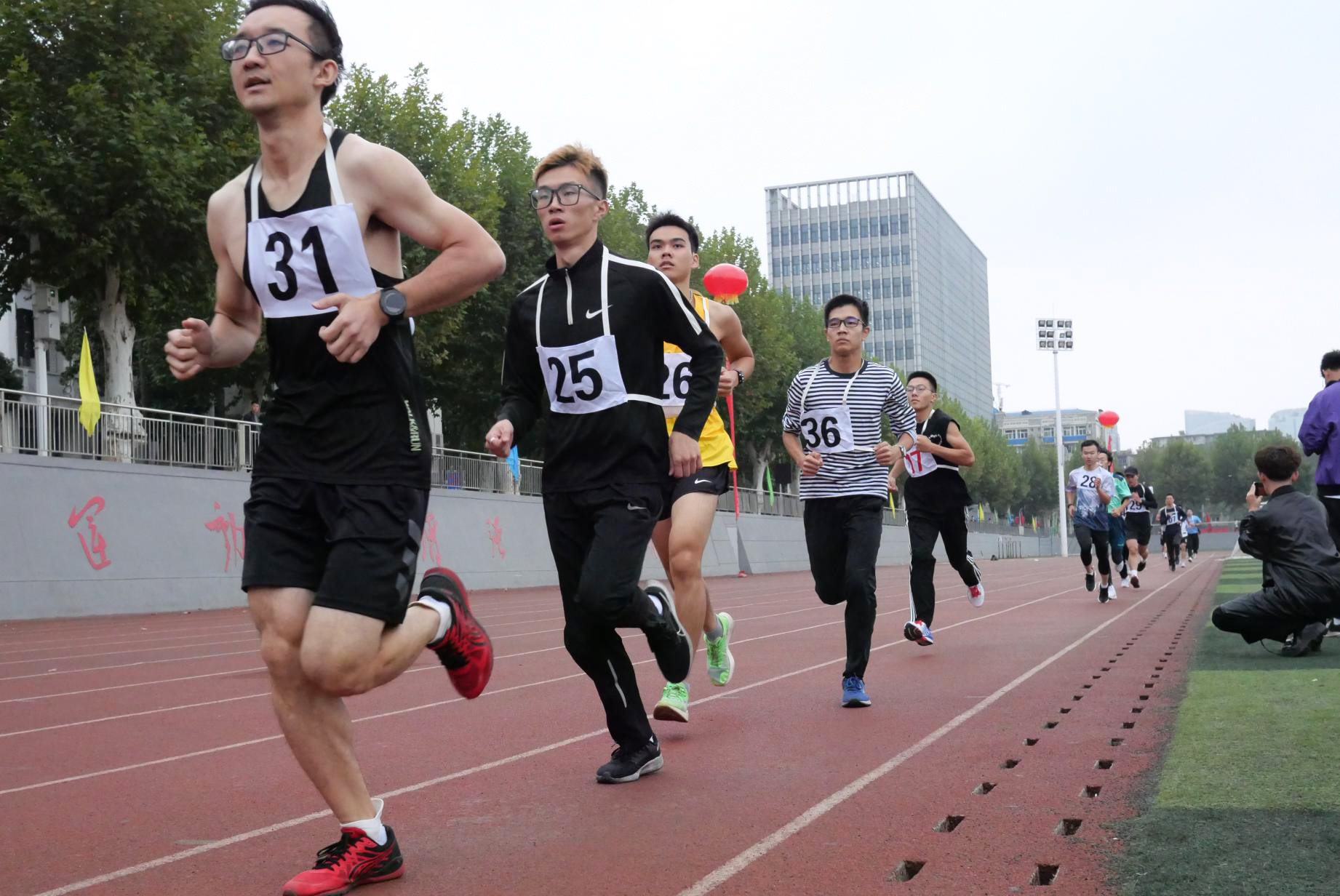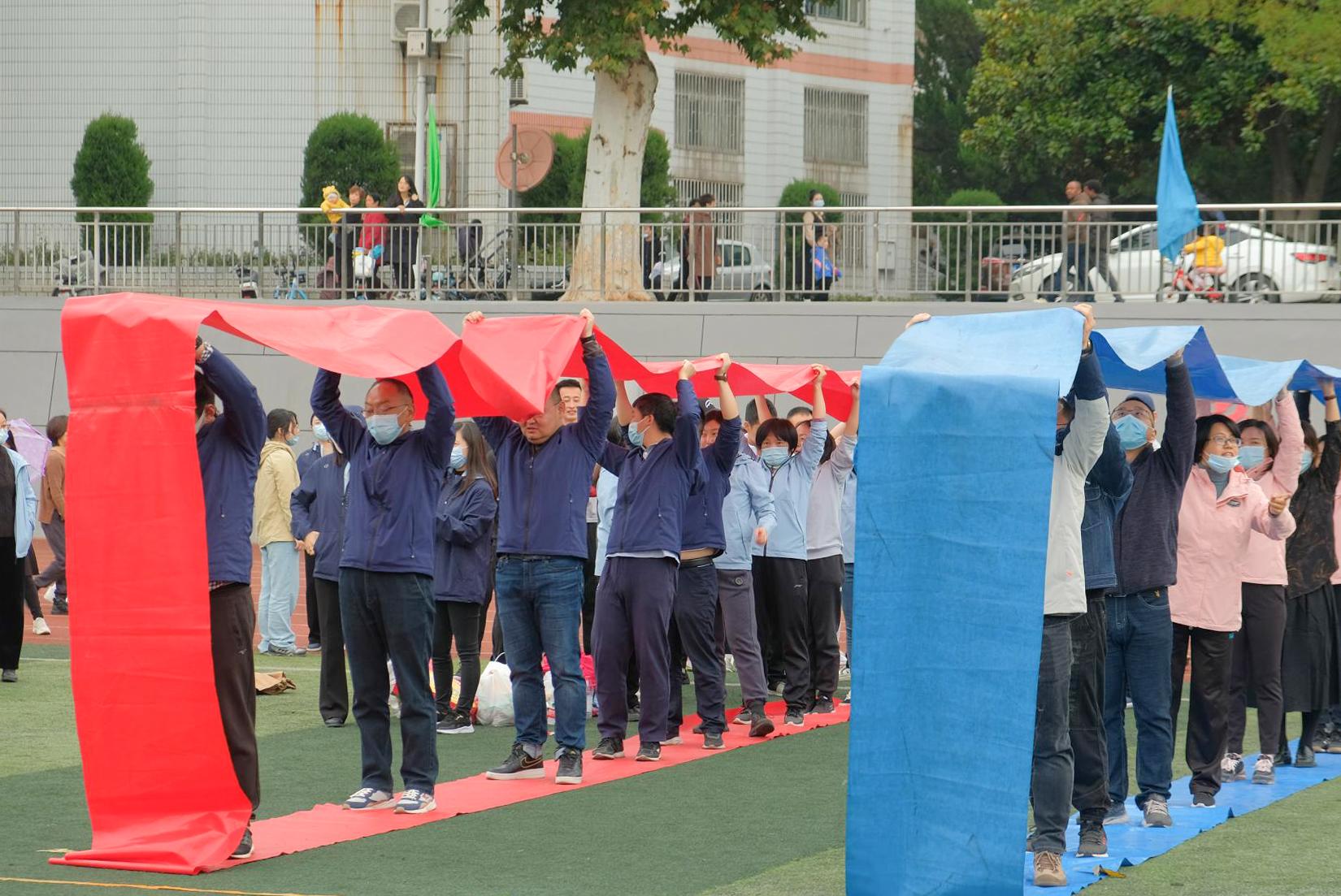 公司教工和员工在运动场上奋力拼搏