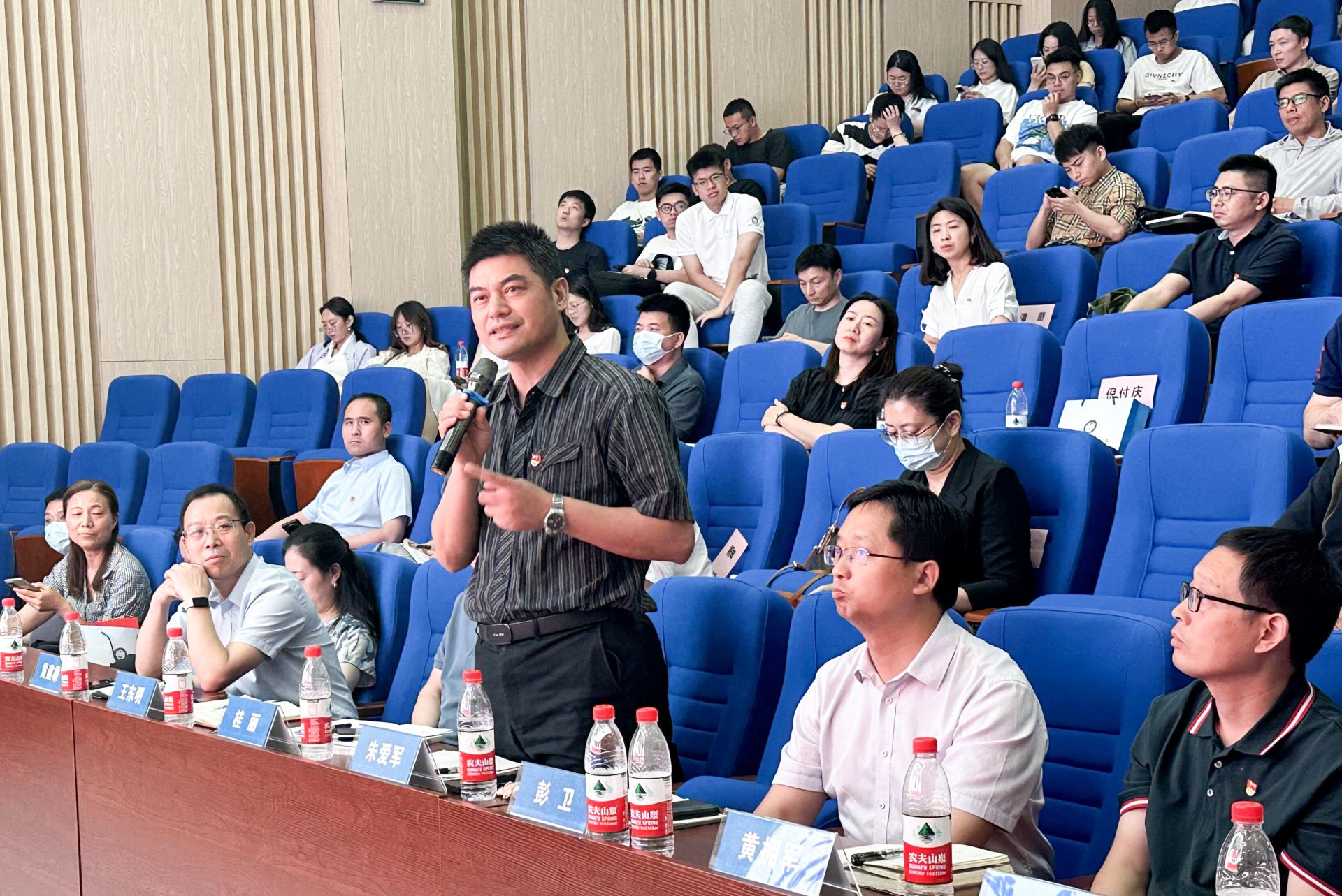 (通讯员陈俊男 张学海 摄影张学海 何娟 编辑严丽莎)为扎实推进学习贯彻习近平新时代中国特色社会主义思想主题教育,进一步促进高公司党建示范创建和质量创优工作,2023年6月16日上午,湖北工业大学党建“双创”工作专题培训班和实地调研考察在beats365官方网站举行。湖北工业大学党委常委、党委组织部长桂丽,党委组织部副部长祁锋,教学公司党委书记、副书记,教学公司党务秘书、党支部书记代表一行40余人来公司进行党建“双创”工作专题培训。公司党委组织部副部长冷再心,公司党委书记李素矿,党委副书记王海锋、副经理柴波,办公室主任刘凤莲,公司教工党支部书记、支部委员,员工党建辅导员及员工党员代表等参加培训会。