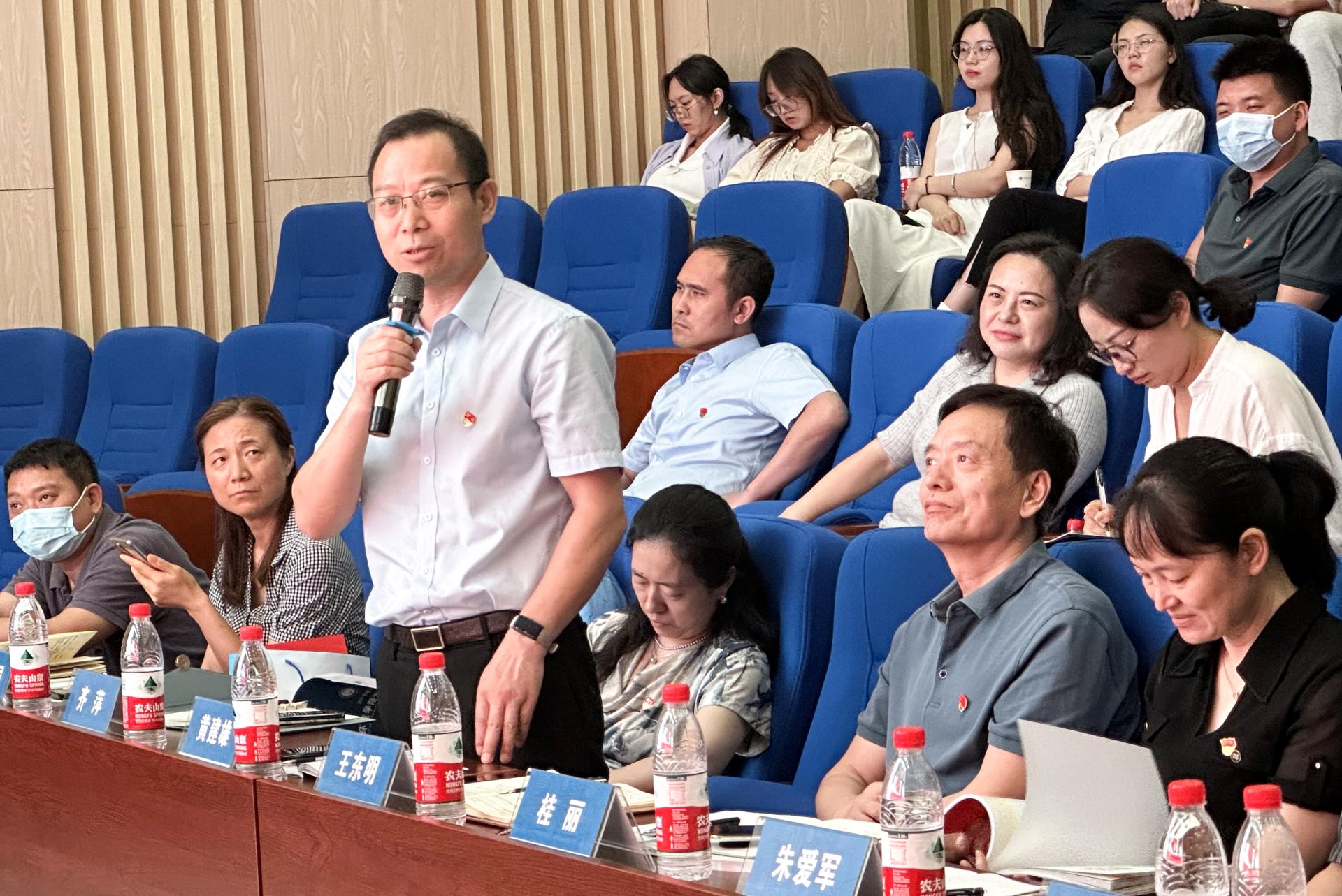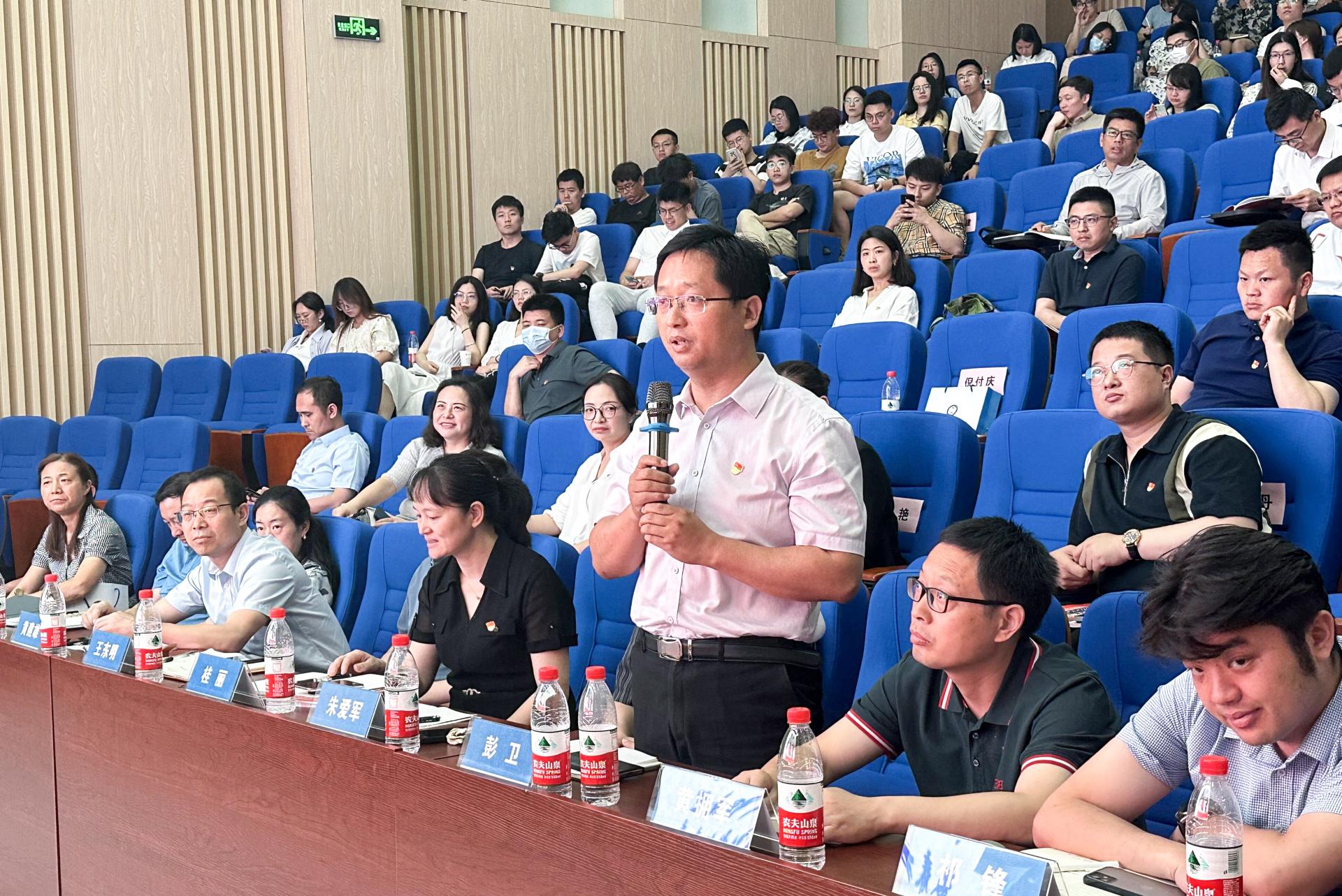 在交流环节,与会人员围绕党建与业务深度融合、公司治理体系与治理能力现代化、“张国旗班”建设、课程思政建设等方面进行提问交流,李素矿一一对答。